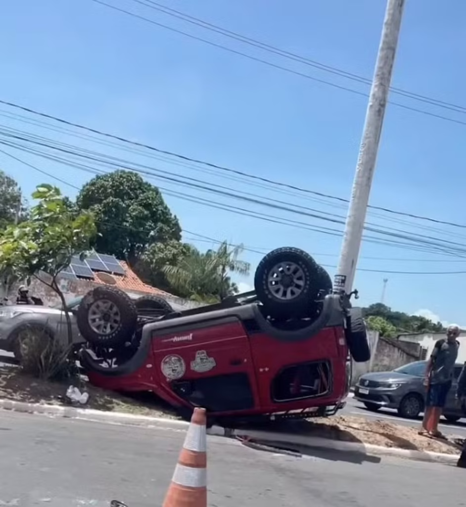 Um acidente foi registrado, no início da tarde deste domingo (23), na Avenida dos Holandeses, no bairro Olho d’Água, na capital.